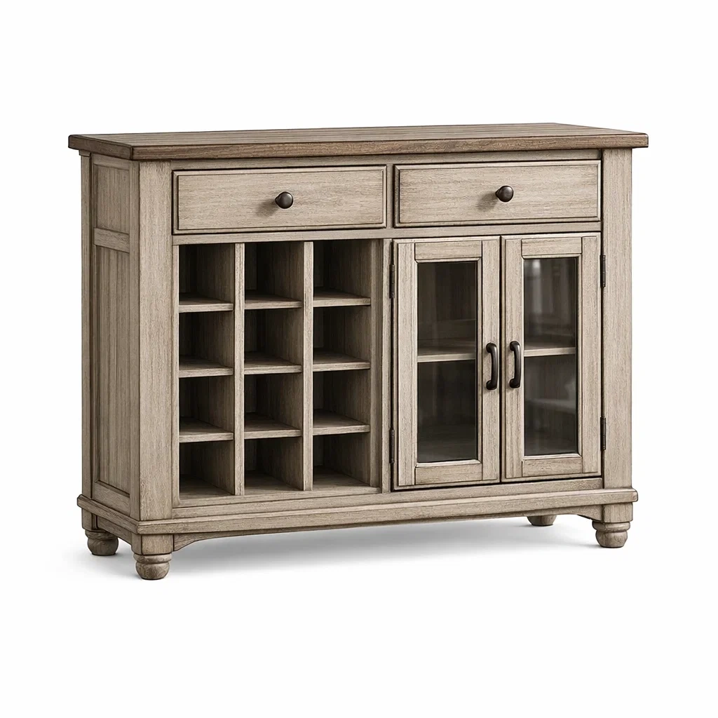 Descrizione componenti: Doppia anta in vetro, ripiani interni regolabili, due cassetti superiori