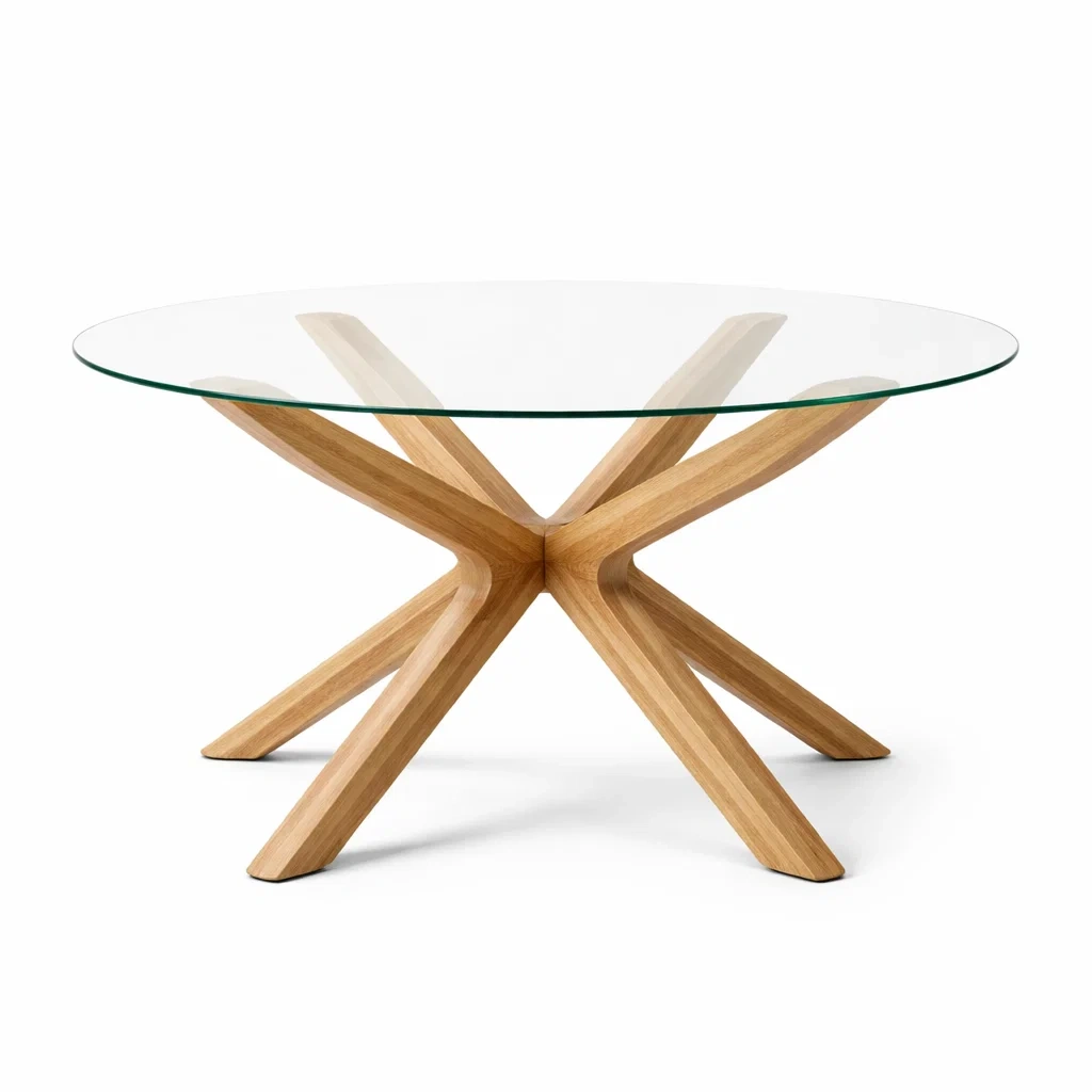 Tavolo da pranzo rotondo in vetro e legno